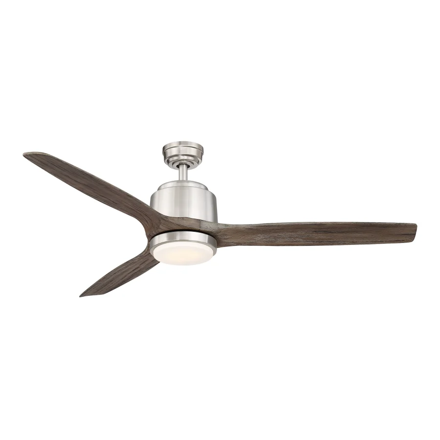 Blade Span: 56" Airflow (High): 5876 CFM Color Temperature: 3000K / 4000K / 5000K (Selectable) Brightness: 1055 Lumens Mounting: 4.5" Downrod Included (Sloped Ceiling Compatible) Dimensions: 14.4" Height x 56" Width Material: Metal, Glass, and ABS Plastic Location Rating: Dry Location (Indoor)